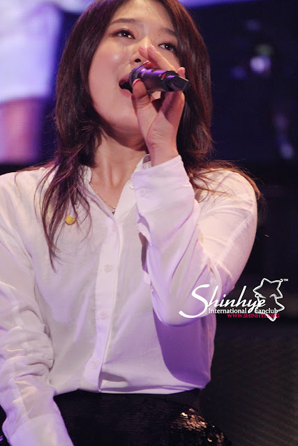 Then Shin Hye came out and did her dance number. It was sooo HOT!!! She’s such a wonderful dancer and from watching her Satisfaction/Gee dance video, you know how well she dances. We couldn’t stop screaming out her name. She danced to two songs, the first is Leona Lewis’ “Yesterday” and the second was to Kesha’s “Tic Toc”. She is an amazing dancer. We were mesmerized. After she finished, we shouted super loud, “Park Shin Hye, you’re awesome” twice as she walked back stage. Then all four came out and Shin Hye was still dressed in her dance clothes with thigh high boots. The MC asked Keun Suk something about her boots, but we don’t know what was asked and what he said, but Shin Hye seemed a bit shy. During the second FM, after her danced, Keun Suk was asked what he thought of it and he said that she was an awesome dancer. She told the MC that Keun Suk oppa also dances Sexy Back well so he danced a bit of it for us.